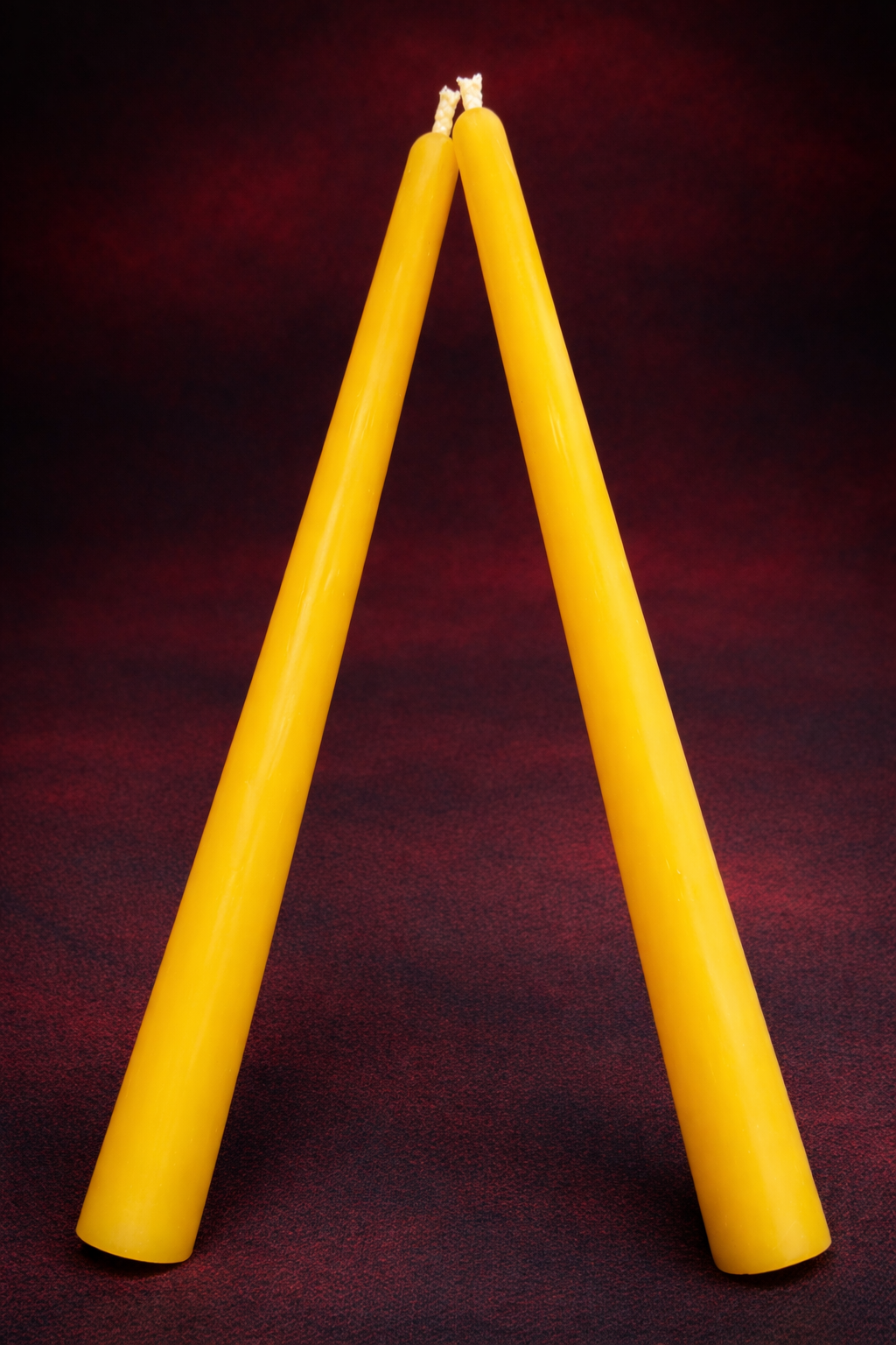 The 12” Taper Beeswax Candle Set (Set of 2) features handmade natural beeswax tapers designed for dining décor, candle holders, and classic warm ambiance.