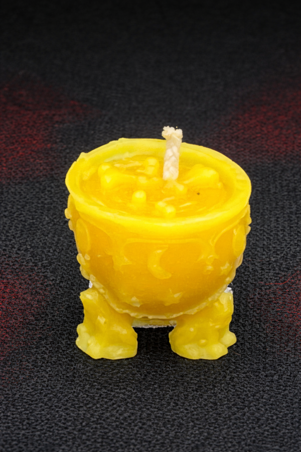 Mini Beeswax Cauldron Candle – Yellow, Moon & Star Design