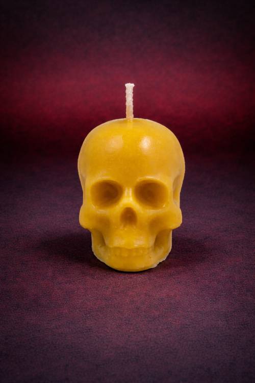 This handcrafted mini skull beeswax candle delivers bold character in a compact form. Detailed with smooth contours and deep-set features, it’s the perfect blend of minimal design and gothic edge. Whether displayed alone or grouped with other pieces, this tiny skull makes a striking accent for altars, shelves, desks, or seasonal décor.