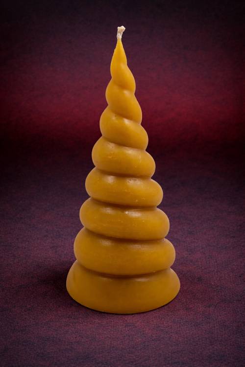 Hand-poured from 100% pure beeswax, this candle features a spiral design inspired by the elegant twist of a unicorn’s horn. Its warm golden hue comes straight from nature — no dyes, no artificial additives