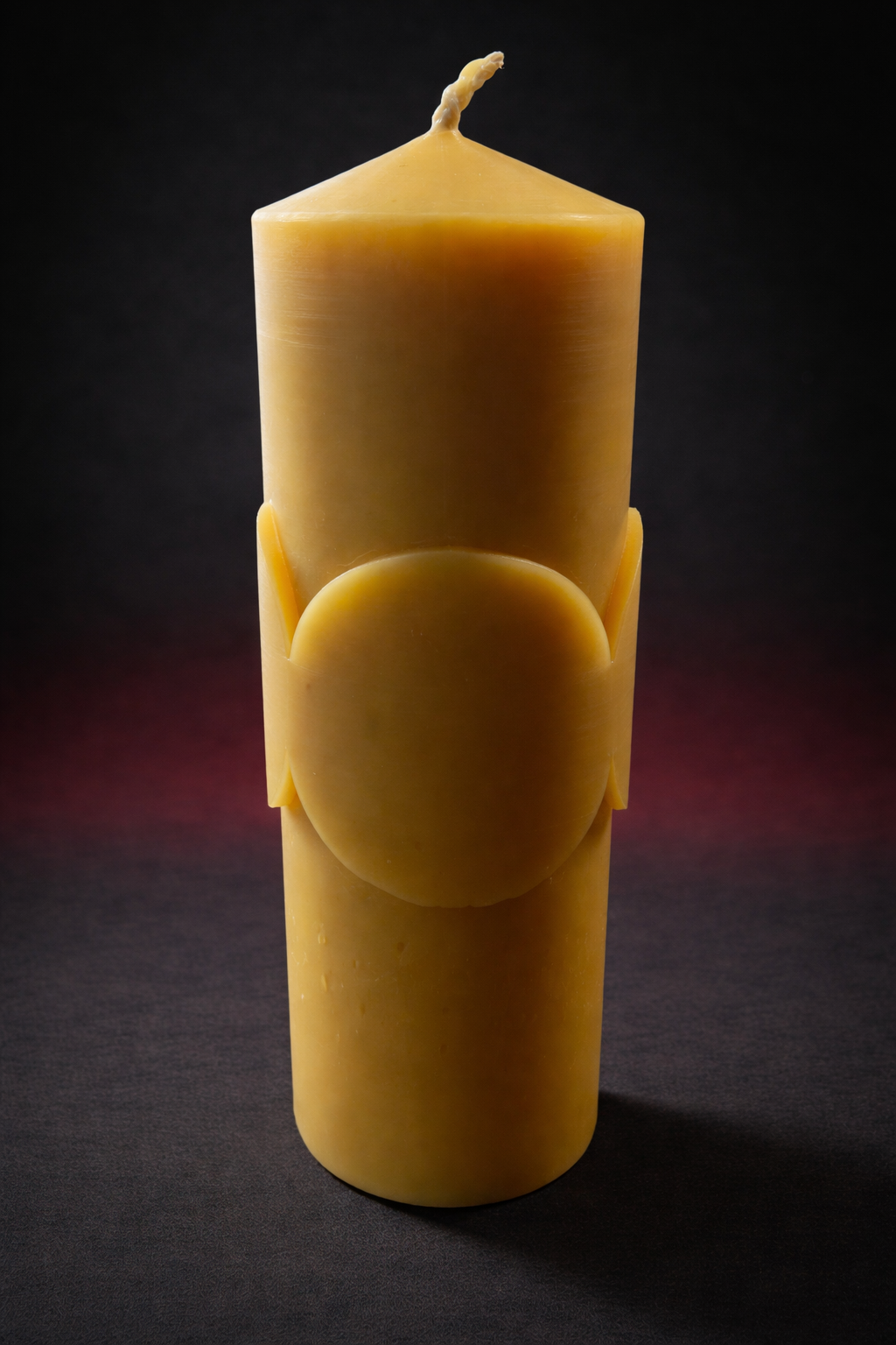 Crafted from pure beeswax, this candle carries a natural golden hue and a subtle honey aroma—no dyes, no synthetic fragrance, just raw, honest material. The smooth finish and dimensional design catch light beautifully, making it as much a statement piece as it is a functional candle.